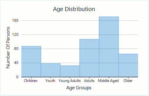 Ranged histogram is a modern Excel-like histogram chart that helps visualize frequency distribution on Y-axis, against ranged X-axis. Like histogram chart type, bins are created by dividing the raw data values into a series of consecutive, non-overlapping intervals.