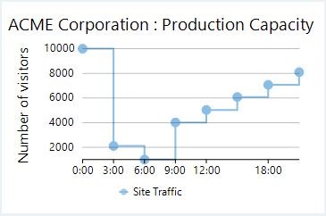 Step symbol chart is a slight variation of step chart and is displayed with markers on the data points. These charts are used when it is required to know the exact data points which have been used to plot the chart.