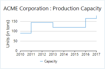 Step area charts are area charts in which points are connected by vertical and horizontal line segments, that resemble staircase steps. The area between X-axis and line segment is filled with color or some pattern.