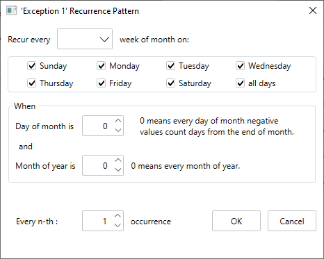 The following image shows how the Recurrence Pattern dialog appears at runtime: