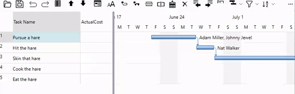 The following GIF shows how GanttView prohibits the user to create a cyclic connection between tasks.