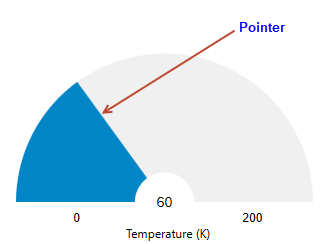 The pointer is an indicator that can be used to represent the gauge's current value. The indicator points to a value along the linear or radial scale.