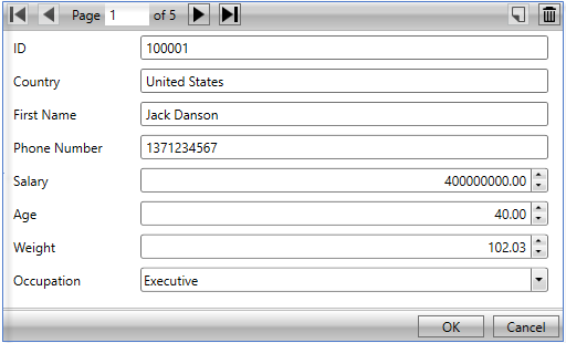 51, 75.45, Occupation.Other, "1673643842", 800));Bind the list to InputPanel through the ItemsSource property as given in the following code.