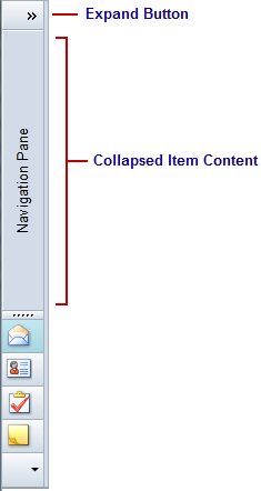 OutlookBar for WPF and Silverlight provides the ability to expand and collaspe a C1OutlookBar so that you make room for other controls or elements. Here are examples of an expanded and collapsed C1OutlookBar: