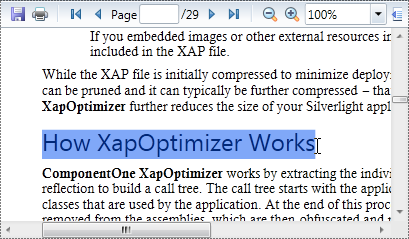 You can select content using by clicking and dragging the mouse cursor over the content you want to select. When content is selected, it will appear highlight. For example, the words "How XapOptimizer Works" are selected in the image below: