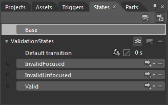 In Microsoft Expression Blend, you can add custom states and state groups to define a different appearance for each state of your user control – for example, the visual state of the control could change on mouse over. You can view and edit visual states by creating a new template. Once you've done so the available visual states for that part will be visible in the States window: