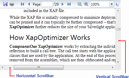 When the content of the control is taller and viewer than the viewing area of the control's content area, scrollbars appear to allow users to move to different areas of the document: