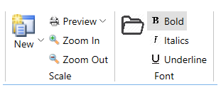 In the image above, the Bold, Italics and Underline buttons in the Font group are all toggle buttons. Note that the Bold toggle button is in checked state using the IsChecked property.