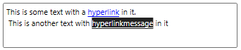 richTextbox.Text = "This is some text with a hyperlink in it. \n This is another text with hyperlinkmessage in it";