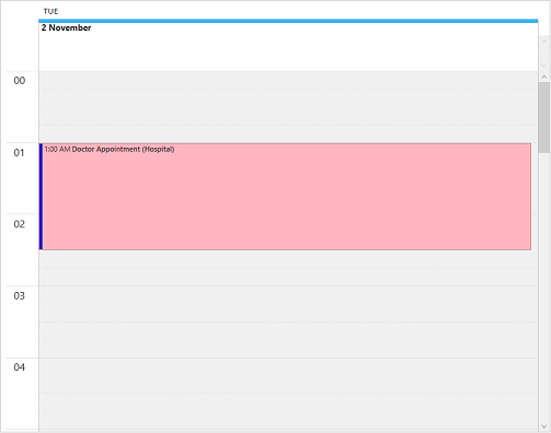 You can use the Appointment dialog box to create new appointments or edit existing appointments by simply double-clicking the time of the appointment. The following image shows an appointment dialog with an appointment set to visit a doctor.