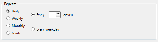Daily | The Daily settings allow you to repeat an appointment every specified number of days or only on working days. |