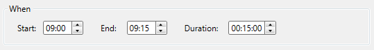 The properties in the When group allow you to set the start time, end time, and duration of the appointment.
