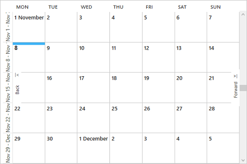 <c1:C1Scheduler Margin="15,15,0,12" Name="scheduler" NextAppointmentText="Forward" PreviousAppointmentText="Back"></c1:C1Scheduler>