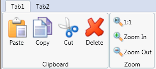 A C1ToolbarTabItem can hold a collection of C1ToolbarGroups which can contain C1ToolbarButtons, C1ToolbarToggleButtons, C1ToolbarDropDowns, and C1ToolbarSplitButtons.