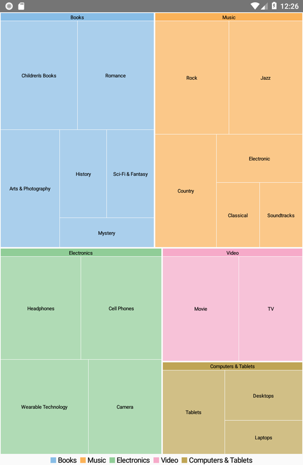 The TreeMap control displays hierarchical data as a set of nested rectangles. Hierarchical data is useful in varied walks of life and setups, be it family tree, programming, organization structure, or directories. Visualizing such a data and spotting information in them is a difficult task, especially if the data is huge. The TreeMap control enables visualization of hierarchical data as nested rectangles on a limited space. It is useful in having a quick glimpse of patterns in large data and comparing proportions.
