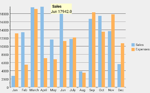 By default, a tooltip generally displays the name of the legend along with the X and Y values when the user taps at any point on the FlexChart control. C1 FlexChart control also allows you to customize the tooltip's background color, text color, etc.