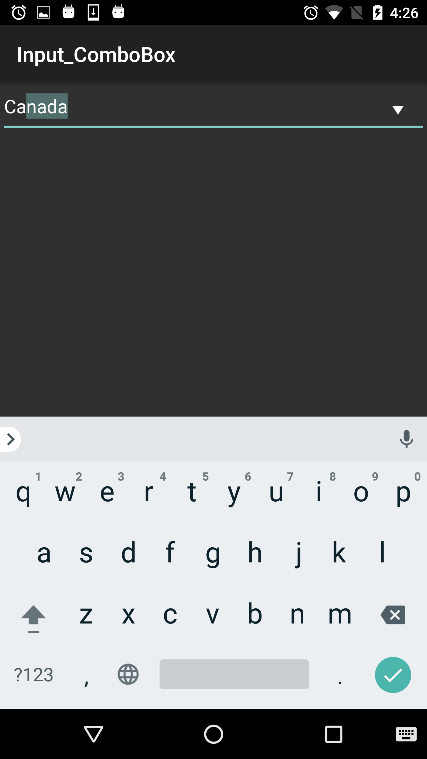 This section describes adding a C1ComboBox control to your Android application and displaying a list of items in the drop-down as suggestions for users.