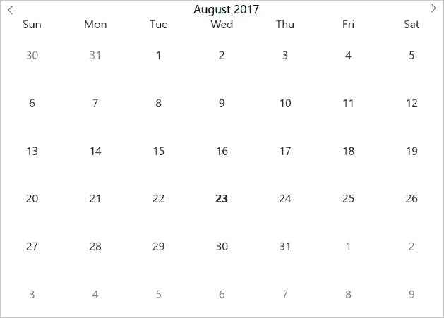 Complete the following steps to initialize a Calendar control in C# or XAML.