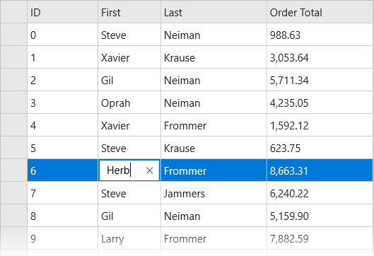 Once you have entered the new data, simply press Enter, this automatically updates the data in the appropriate format. You can set the IsReadOnly to true for restricting editing in the rows and columns.