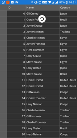 FlexGrid allows you to enable the PullToRefresh feature by setting the AllowRefreshing to true and creating a new class that implements the C1CursorCollectionView to simulate the dynamic data. In this sample, we have set the ItemSource property of the grid to MyCollectionView() method that defines PageSize and no of items to be displayed in the grid.