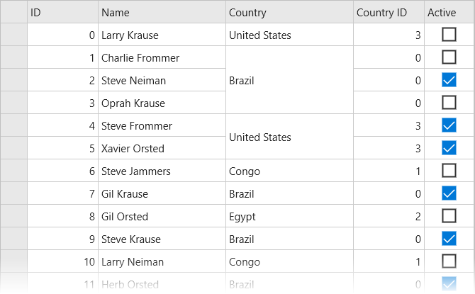 FlexGrid allows you to merge cells, making them span multiple rows or columns. This capability enhances the appearance and clarity of the data displayed on the grid. The effect of these settings is similar to the HTML <ROWSPAN> and <COLSPAN> tags.