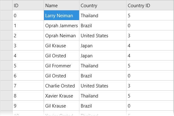 The image below shows how the FlexGrid appears after the SelectionMode property is set to Cell.