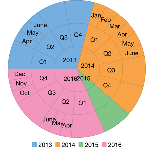 The following image shows how the Sunburst Chart appears after completing the steps above.