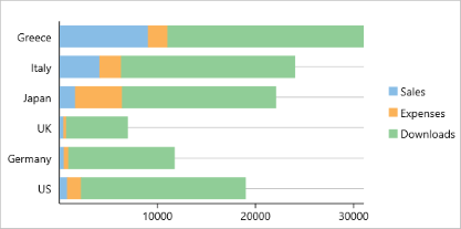 A Bar chart or a Column chart represents each series in the form of bars of the same color and width, whose length is determined by its value. Each new series is plotted in the form of bars next to the bars of the preceding series. When the bars are arranged horizontally, the chart is called a bar chart and when the bars are arranged vertically, the chart is called column chart. Bar charts and Column charts can be either grouped or stacked.