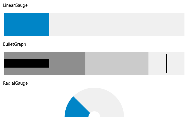 - Direction: Place the LinearGauge and BulletGraph horizontally or vertically.