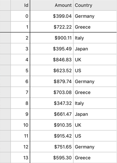 The following code example demonstrates how to freeze rows and columns in FlexGrid. The example uses data source added in the Quick Start section.