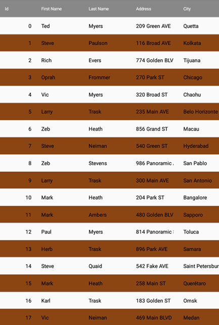 FlexGrid has various built-in properties to customize grid's appearance. A user can set attributes such as background color, alternating row color, text color, header color, font, selection mode, selected cell color, etc to customize the overall appearance of the FlexGrid control. Moreover, it also allows you to set individual properties for RowHeaderGridLinesVisibility, ColumnHeaderGridLinesVisibility, and TopLeftHeaderGridLinesVisibility that provides more granular styling capabilities that are more suited for Material themes.
