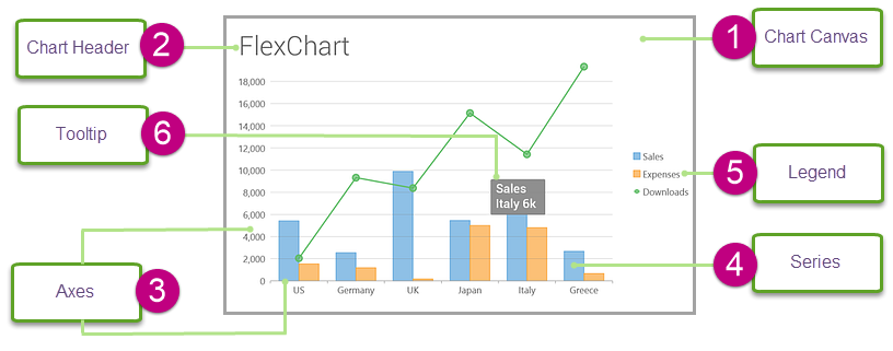 Chart Canvas | Area on which all chart elements including the series, axes title and legend are placed. |