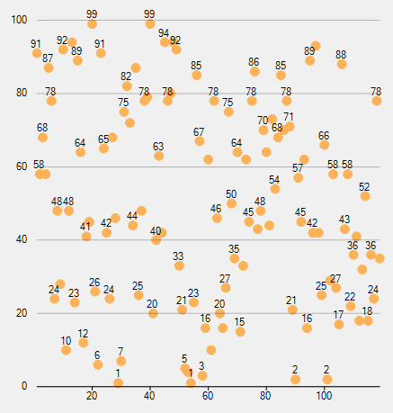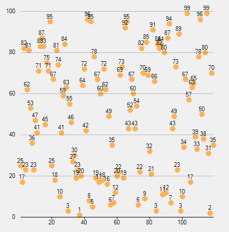 This approach may not provide an optimal layout when working with large data set and when there is no enough space for all data labels. In this case, it's recommended to reduce the number of data labels. For example, create a series with limited number of data points that should have labels, that is, chose to hide the labels at the individual series level.