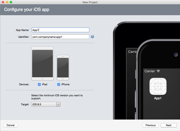 - Click OK. The New iOS App dialog appears.