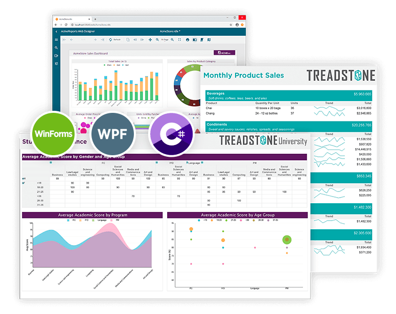ActiveReports.NET is a premium enterprise-level .NET reporting solution for web and desktop applications. Deliver rich interactive reports with our feature-packed reporting solution for all platforms.