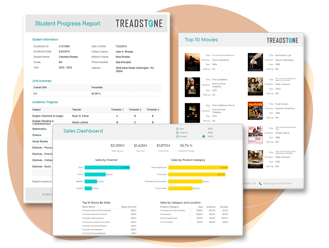 Fulfill your requirements for a reporting solution by building printable, analytical, interactive, or fixed-layout reports.