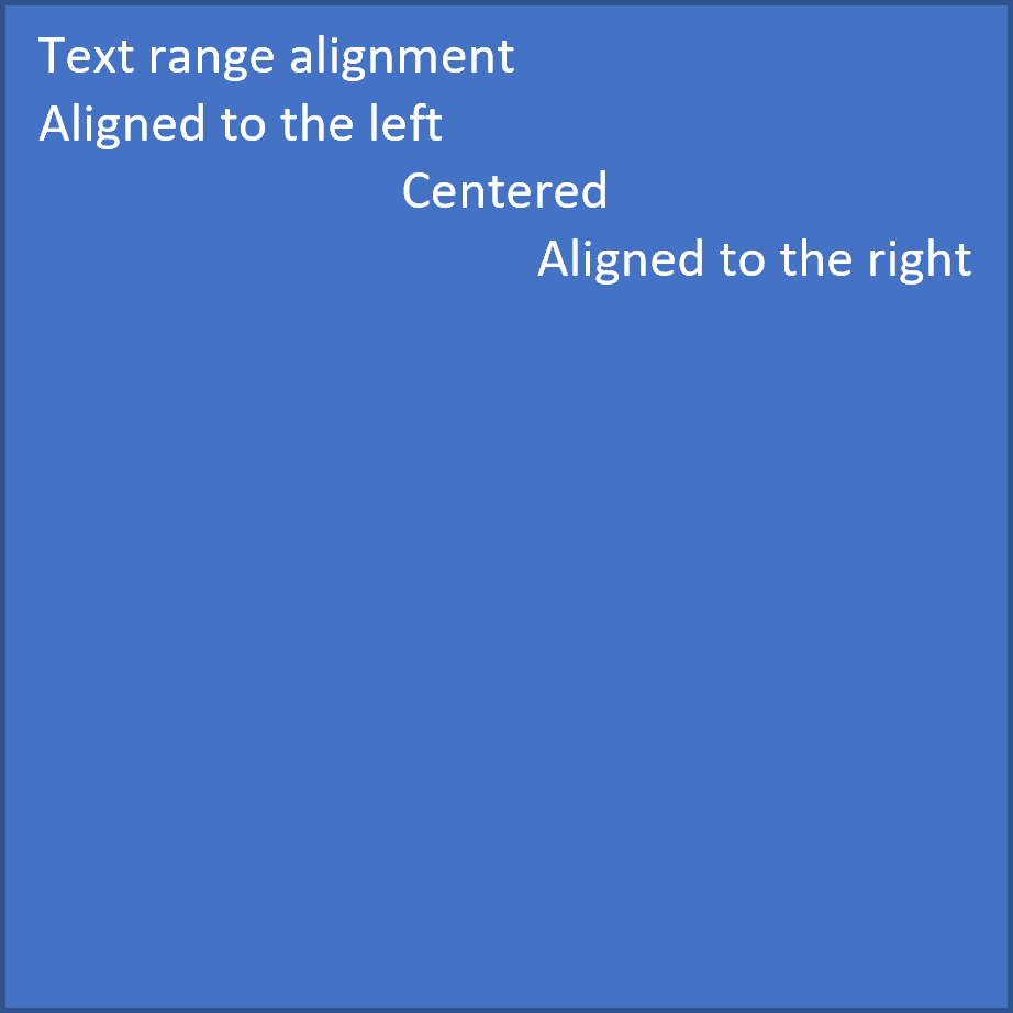 shape.getTextFrame().getTextRange().setText("Text range alignment");