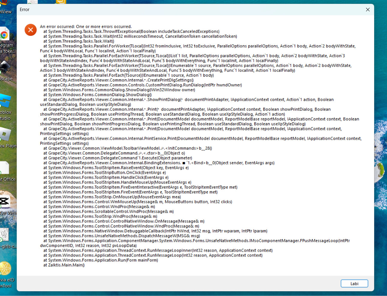 Error produce, when user click print buttom on AR.NET winforms viewer.