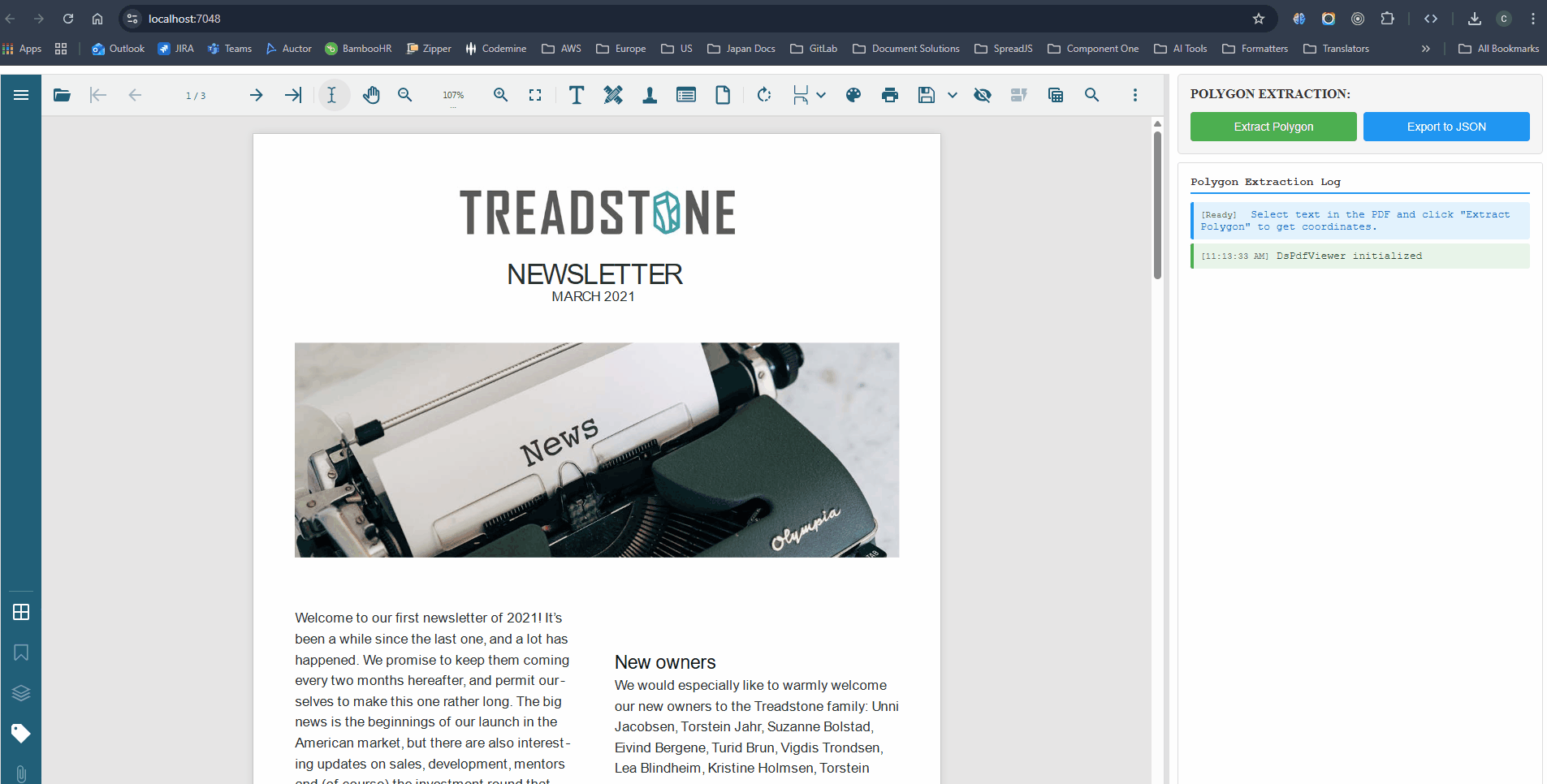 Please refer to the attached code sample demonstrating how to extract polygon data from the selected text in DsPdfViewer.