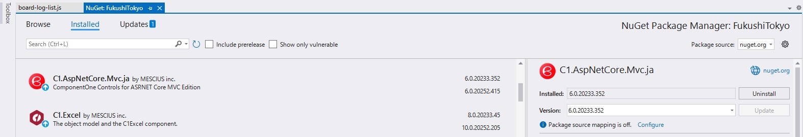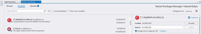 We are currently using ComponentOne ASP.NET Core MVC with the following environment: