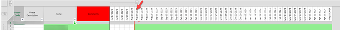 In the attached Image there are N number of columns. The header columns which are in grey color are static and the columns with Date and Year titles are dynamic. I want to add background color and hover over comment to a specific column with the date and year title (Pointed with an arrow in the attached image).