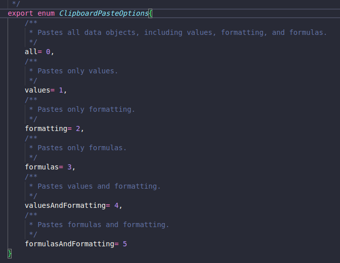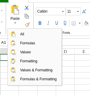 // Create the Paste Values and Formulas Command let pasteValuesAndFormulasCommand = { canUndo: true, execute: function (context, options, isUndo) { var Commands = GC.Spread.Sheets.Commands; options.cmd = "pasteValuesAndFormulasCommand"; if (isUndo) { Commands.undoTransaction(context, options); return true; } else { Commands.startTransaction(context, options); let activeSheet = context.getActiveSheet(); let activeSelections = activeSheet.getSelections()[0]; let fromRange = [new GC.Spread.Sheets.Range(clipboardData.ranges[0].row, clipboardData.ranges[0].col, clipboardData.ranges[0].rowCount, clipboardData.ranges[0].colCount)]; let toRanges = [new GC.Spread.Sheets.Range(activeSelections.row, activeSelections.col, activeSelections.rowCount, activeSelections.colCount)]; spread.suspendEvent(); spread.suspendPaint(); let fromSheet = context.getSheetFromName(clipboardData.sheetName); // Paste the values spread.commandManager().execute({ cmd: "clipboardPaste", sheetName: activeSheet.name(), fromSheet: fromSheet, fromRanges: fromRange, pastedRanges: toRanges, isCutting: false, clipboardText: "", pasteOption: GC.Spread.Sheets.ClipboardPasteOptions.values }); // Paste the Formulas spread.commandManager().execute({ cmd: "clipboardPaste", sheetName: activeSheet.name(), fromSheet: fromSheet, fromRanges: fromRange, pastedRanges: toRanges, isCutting: false, clipboardText: "", pasteOption: GC.Spread.Sheets.ClipboardPasteOptions.formulas }); // Set the Selection activeSheet.setSelection(activeSelections.row, activeSelections.col, clipboardData.ranges[0].rowCount, clipboardData.ranges[0].colCount) spread.resumePaint(); spread.resumeEvent(); Commands.endTransaction(context, options); return true; } } }Kindly let us know if you face any issues.