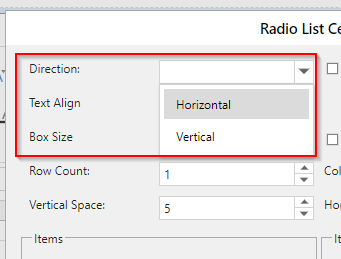 - Cell Type → Radio Button List → The Direction or Alignment cannot be selected