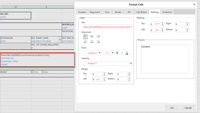 I’m having numerous issues with the designer not being able to show settings that I applied using the designer previously. In the example attached, I set a water mark and padding properties and when I revisit the “Format Cells” dialog it forgot my prior settings and everything else that was defaulted such as font family and size. When it starts happening to one cell it happens to all the cells.