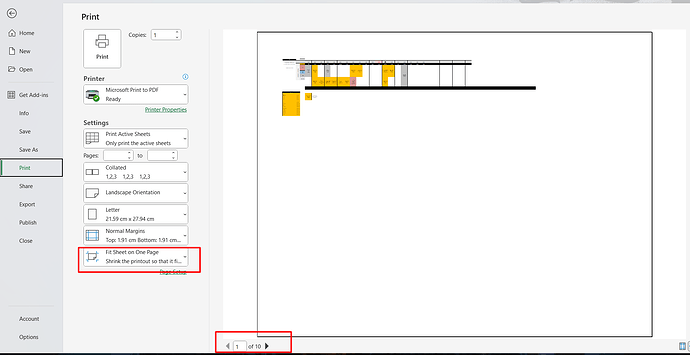 The devs have confirmed the issue as a bug. The devs have mentioned that in the excel file that you have shared, the data in the Cell D1502 is “MM” and the setting is “Fit Sheet On One Page”. While printing the Excel file, Excel had some policies, didn’t fit all the content on one page, but separated it into 10 pages.