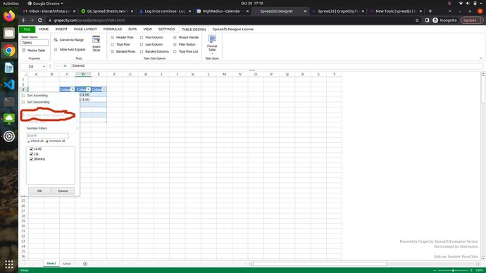 We are sorry but this is by design to match excel behavior. It will only be enabled if the column has any filter applied. We are sorry for the inconvenience.