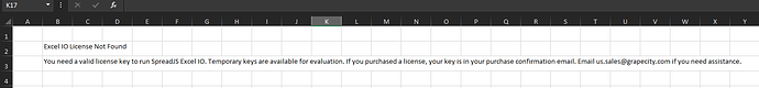 We are using SpreadJS Excel IO to export the spreadsheet data and we have license key SpreadJS 15 Deployment License Single Hostname - ANNUAL. But, when exporting the data, it shows the message that a license is needed to run it.
