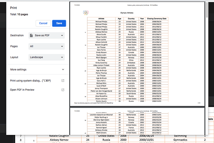 However when the spread.print() function is run and the browser print dialog opens the above two values still need to be set manually. As seen in the picture even though I set it to portrait, the browser print dialog still shows layout as landscape,