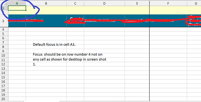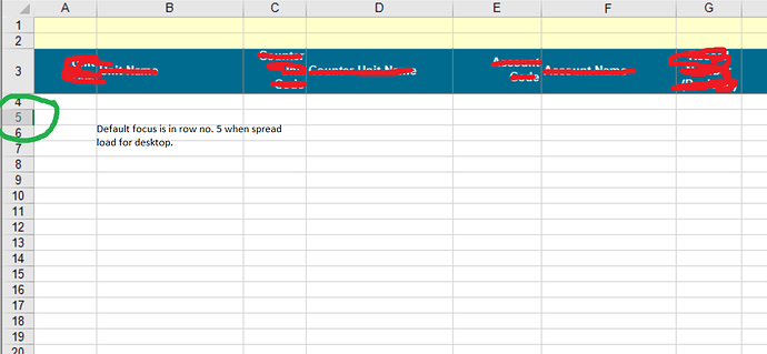 We are using spreadjs14 for web, I want to set the focus on active row in spread when spread load for first time as show in screen shot 1 focus is in row no 5. But, in web when spread load it set the focus on cell A1 as shown in screenshot 2. Please suggest, if there is any way to set focus on active row instead of any cell.