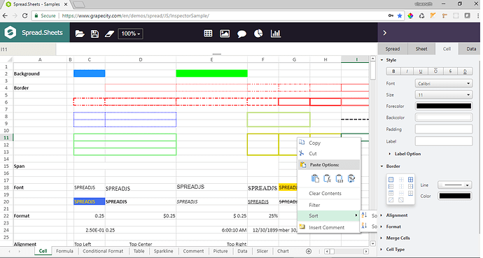 “just open spread sheet online sample:https://www.grapecity.com/en/demos/spread/JS/InspectorSample/”
